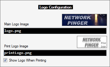 Caso não hajam logotipos definidos, ou os nomes escritos sejam de ficheiros não existentes, o logotipo da impressão não existirá, e o logotipo do software, que tem de existir, será o por defeito do Network Pinger, incluído na própria aplicação.